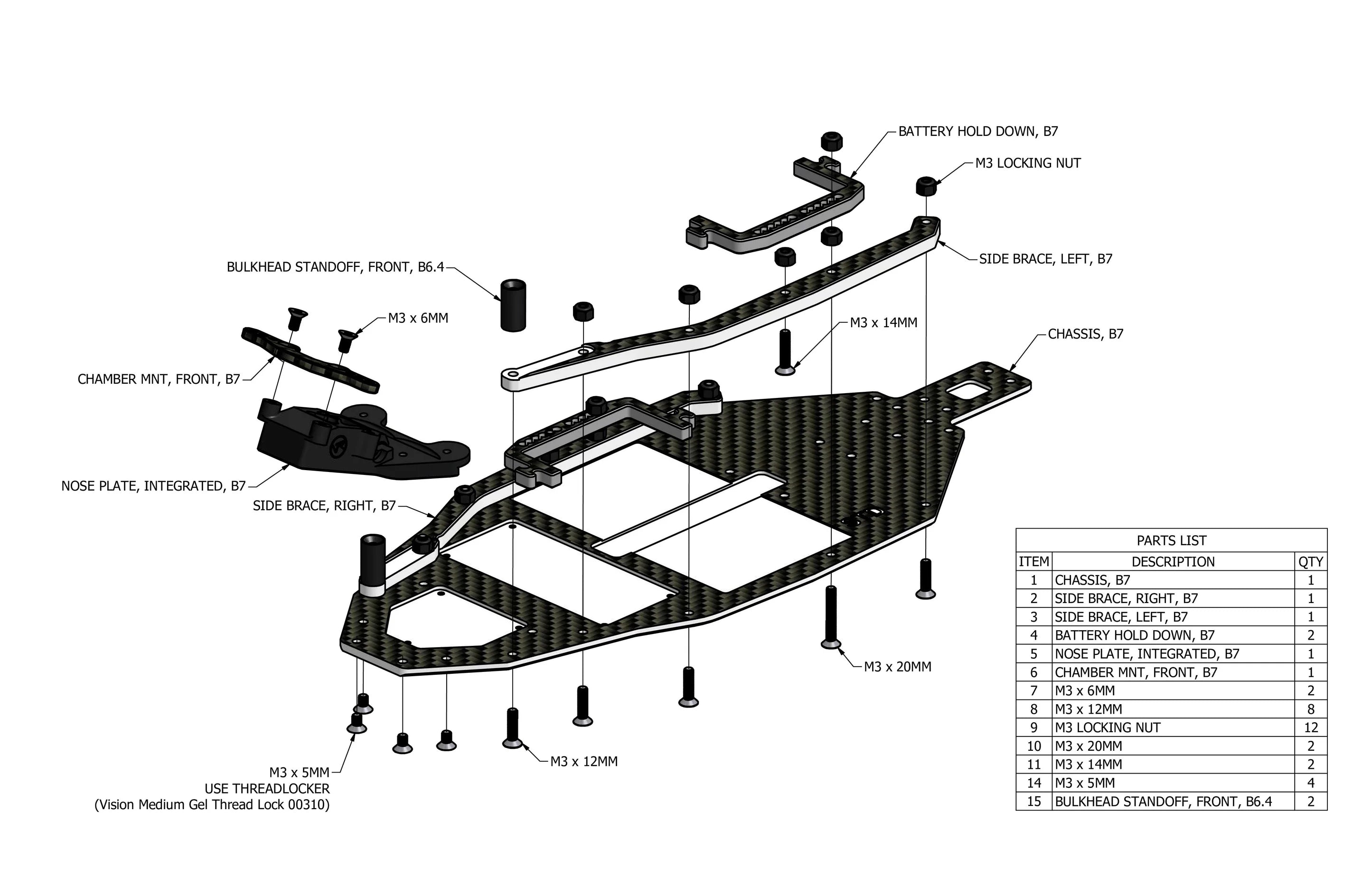 The Vision Racing STD Carbon Fiber Chassis for the Team Associated B7 is a premium lightweight upgrade designed to improve overall performance by significantly reducing chassis weight. This setup removes approximately 20 grams compared to stock, helping lower overall mass and improve responsiveness on the track.